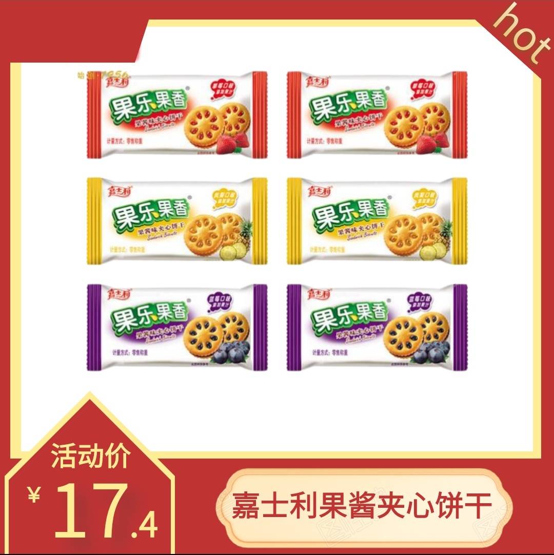 嘉力士果酱夹心饼干混合多口味酱心休闲零食小吃草莓蓝莓整箱