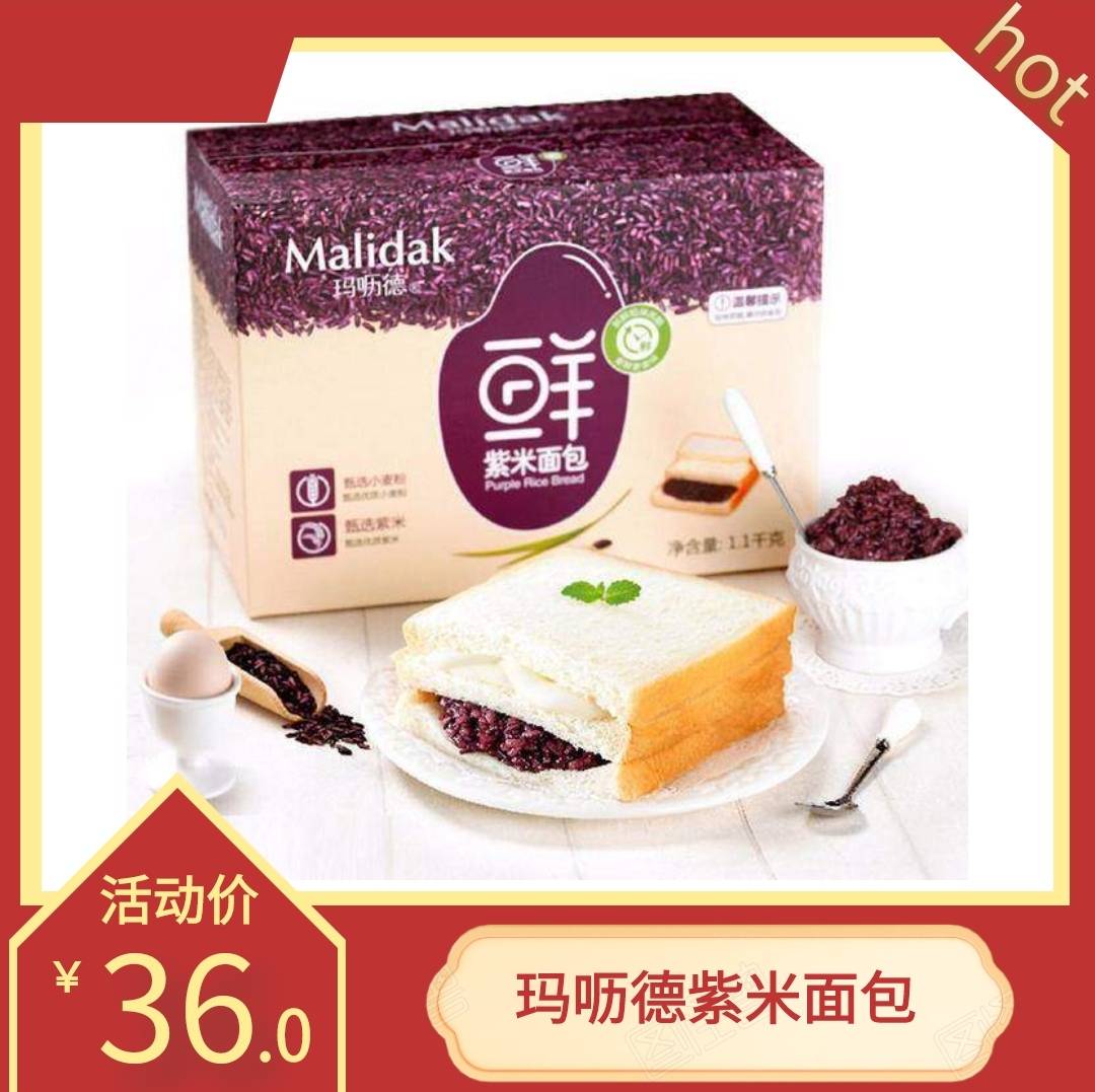 玛呖德紫米面包黑米夹心奶酪切片三明治蛋糕营养早餐蒸零食品整箱
