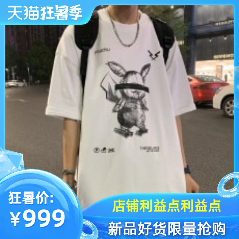 潮牌涂鸦皮卡丘卡通圆领T桖男女款
