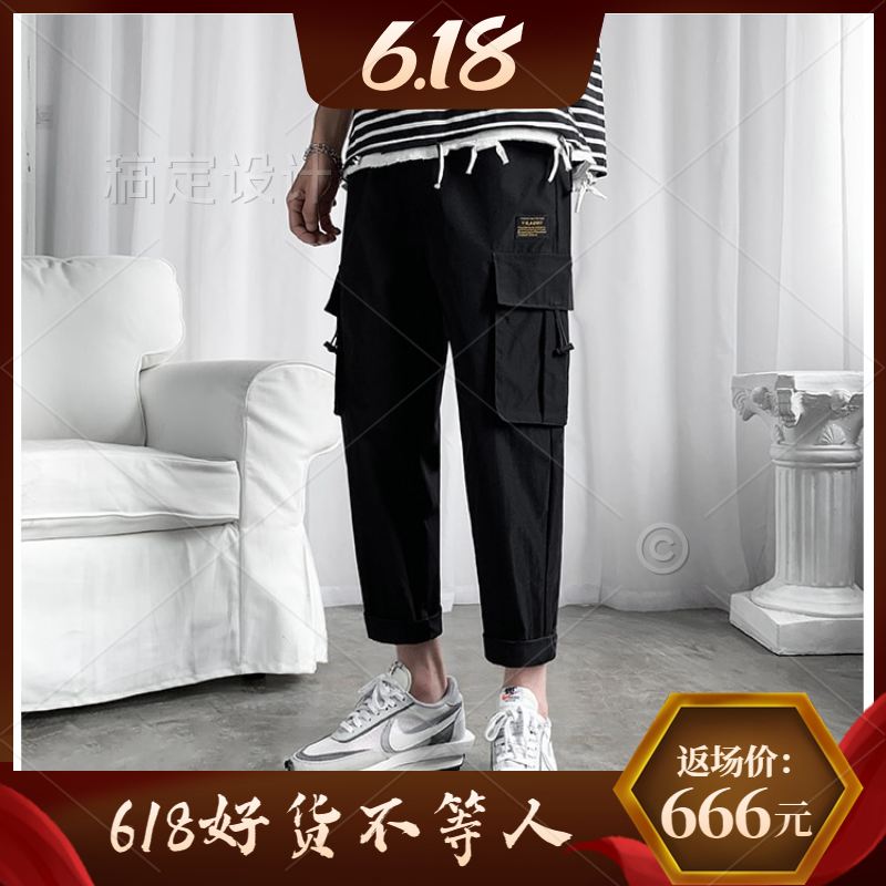 夏季新款港风文艺宽松直筒休闲裤男士休闲九分裤