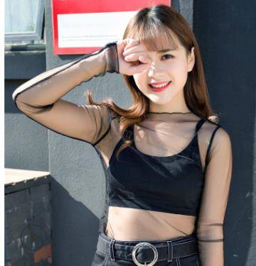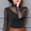 新款百搭网纱打底衫 女渔网网纱衣 透视性感小立领长袖蕾丝衫