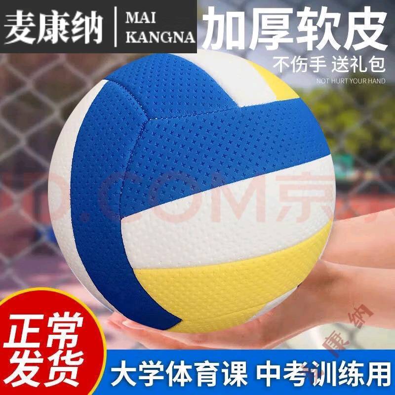 充气软式排球5号中学生用PU沙滩排球考试 5号黄蓝白排球筒针网球包