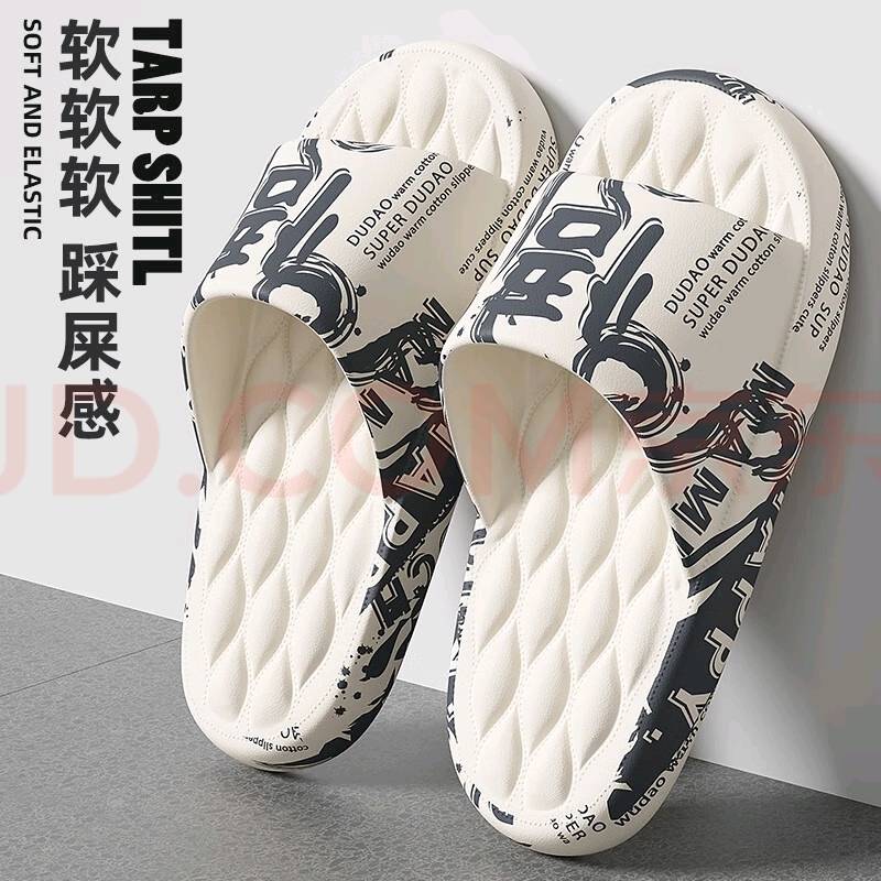 安尚芬不臭脚夏季凉拖鞋男士户外穿软居家浴室防滑按摩踩屎感地板拖 白青 42-43 适合41-42(内长265MM)