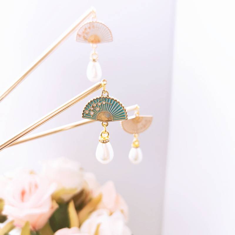 簪子简约盘发发簪古风日常扇子保色步摇中国风头饰汉服女15CM发饰
