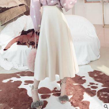 2018冬季新品女装 韩国纯色兔毛混纺加厚高腰A字毛织长裙半身裙