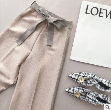 2018冬季新品女装 韩国兔毛混纺拼亮丝高腰毛织加厚女士休闲裤