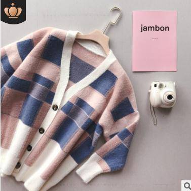 2018冬季新品女装 韩国格纹兔毛仿貂 精品仿貂女士毛呢外套