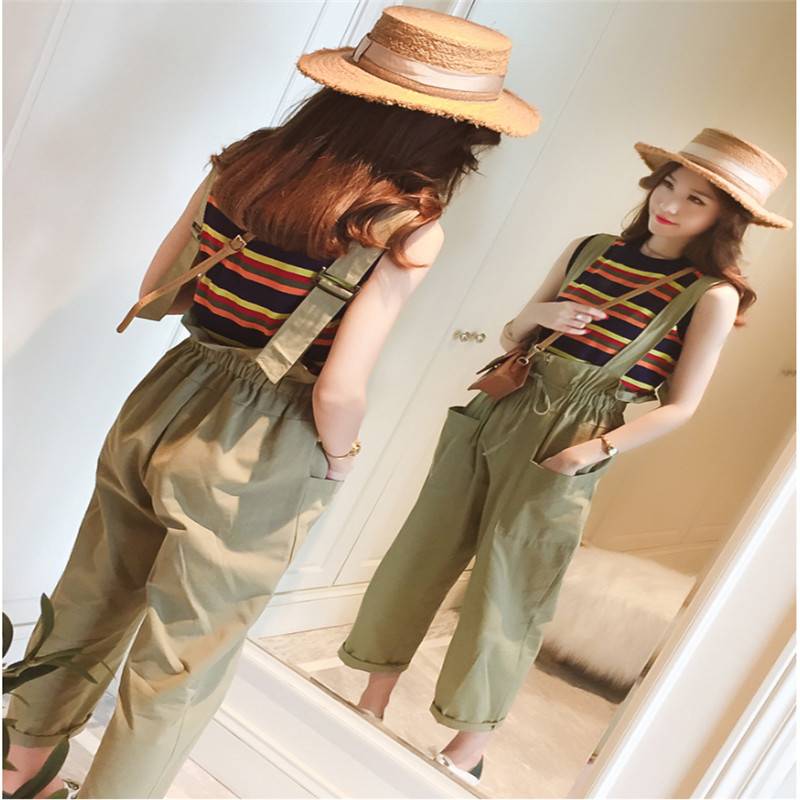 工装背带裤女夏装2018新款高腰花苞吊带休闲裤女宽松显瘦大码长裤