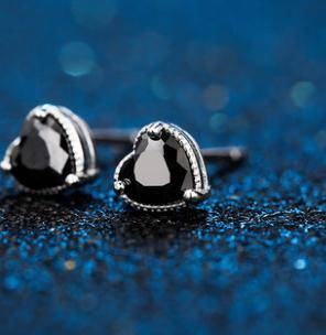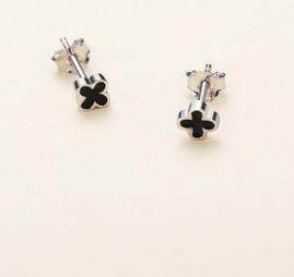 Ohha四叶草纯银耳钉女日韩国时尚气质个性简约黑色小耳环耳饰