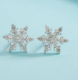 Ohha纯银耳钉女简约气质韩国创意学生森系个性雪花耳环闺蜜礼物