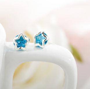 Ohha海洋之星系列 蓝色星星耳钉耳饰女镂空925银饰品小清新