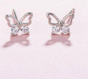 Ohha蝴蝶耳钉纯银女韩国气质个性简约创意耳环迷你小耳骨钉超仙