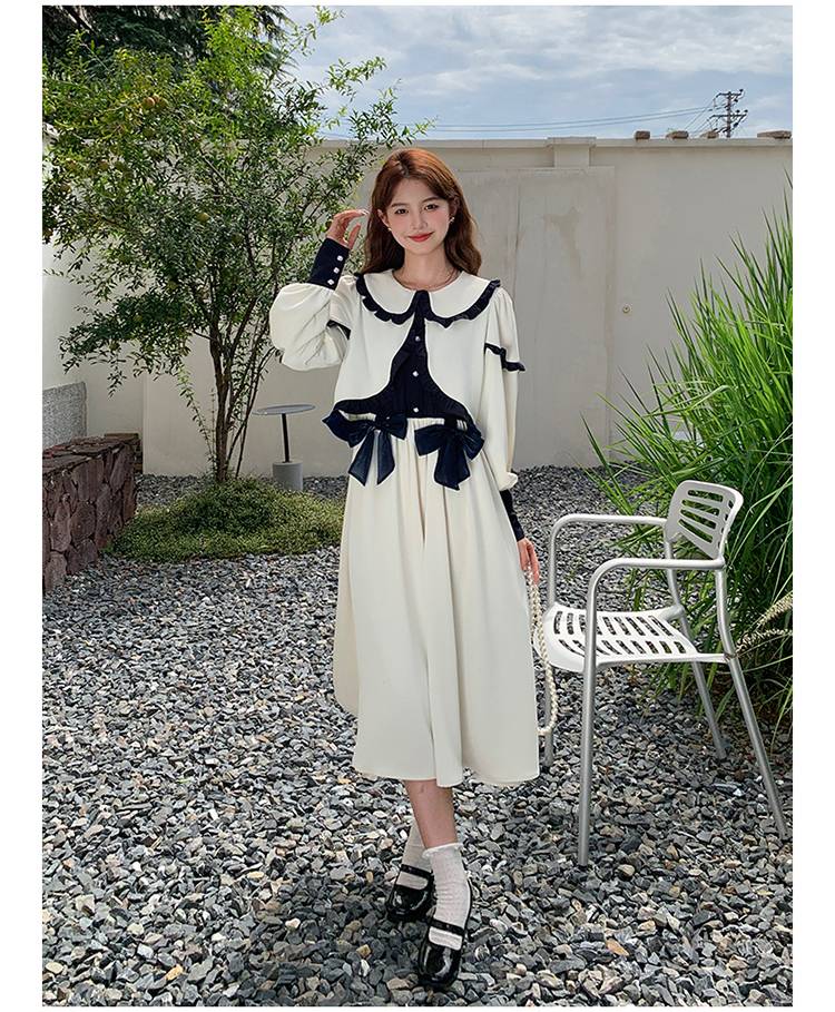 小个子秋新款撞色萝莉连衣裙学院风温柔