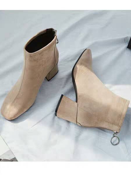 网红靴子小短靴女2018新款ins马丁靴女短筒粗跟绒面方头鞋瘦瘦靴