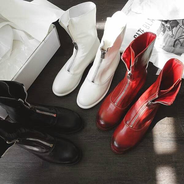 与格2018新秋冬倒靴前拉链中筒靴子做旧复古英伦风马丁靴女短靴子