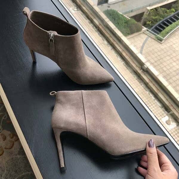 自制2018春秋季新款尖头细跟高跟短靴及裸靴侧拉链韩版女靴子