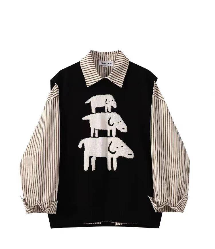 条纹长袖衬衫秋冬叠穿韩版马甲背心 70.00 已售:1件