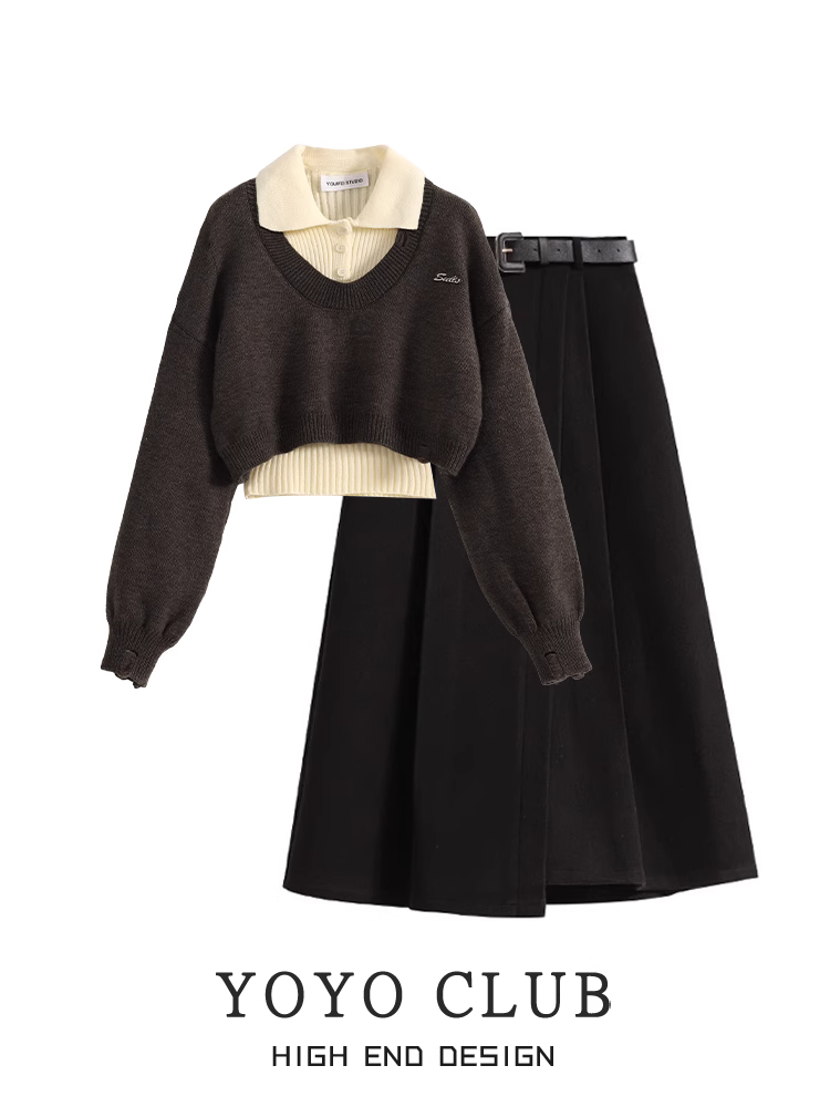 女装复古短款毛衣两件套冬季毛呢半身裙 80.00 已售:0件