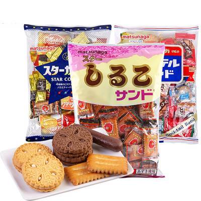 日本松永红豆饼干什锦夹心饼干进口休闲办公室小零食3种组合共3袋