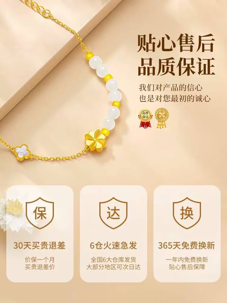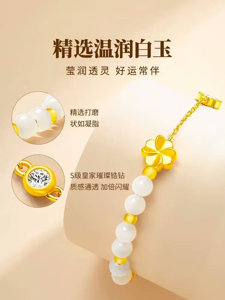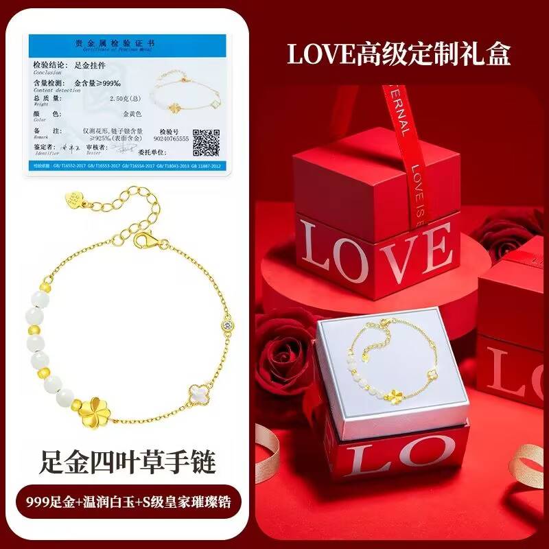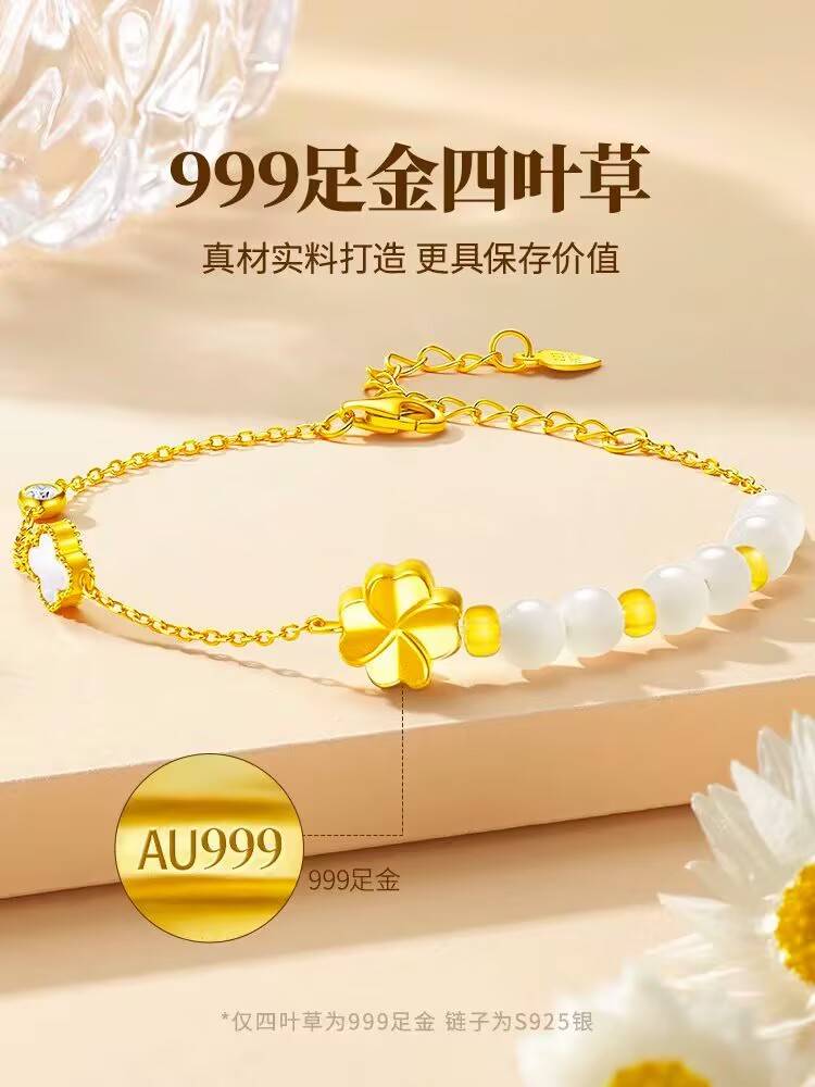 足金四叶草手链999足金,湿润白玉,s级皇家璀璨。