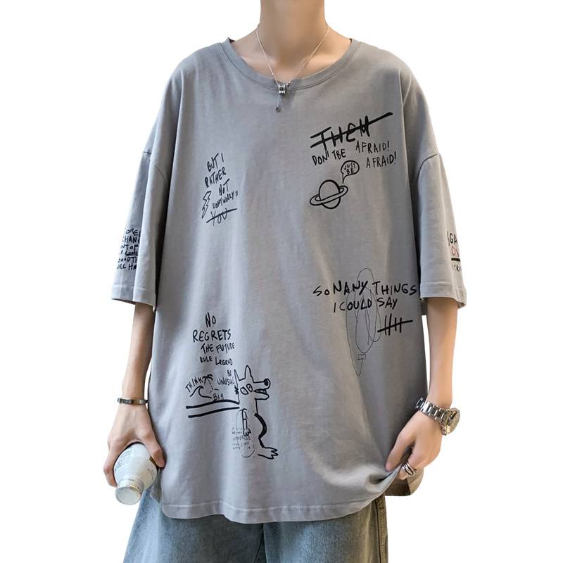 W实拍短袖t恤男士夏季满印半袖体恤ins潮流潮牌宽松男装衣服G1190