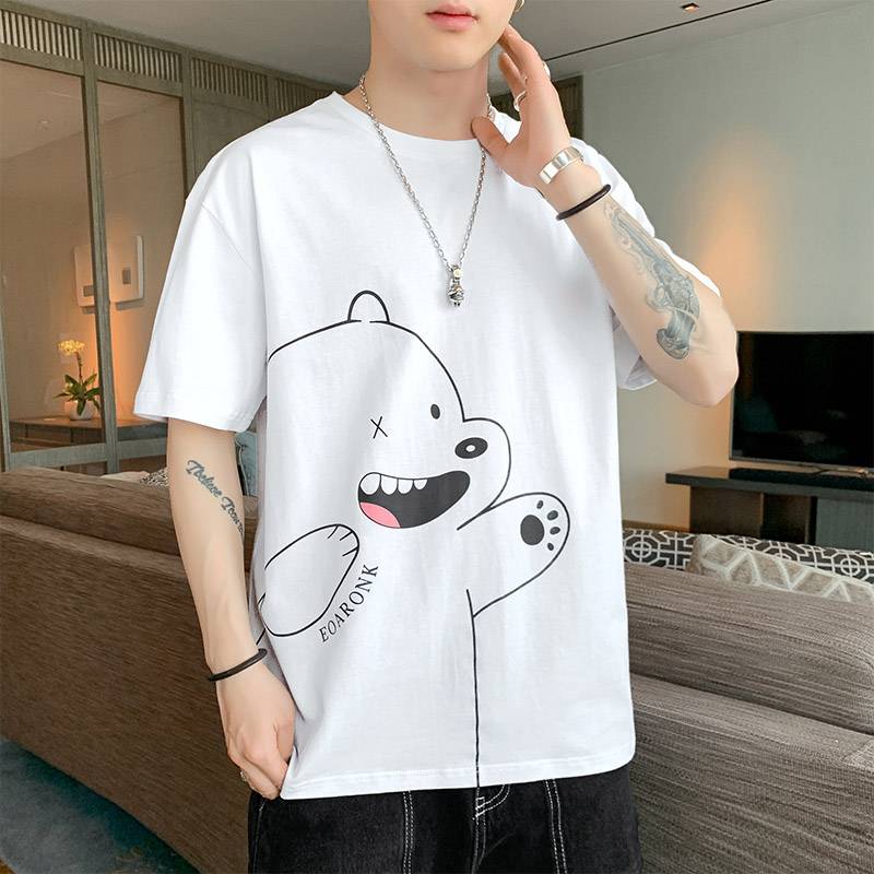 W实拍男士短袖t恤情侣纯棉上衣服潮流半袖潮牌夏装男装白TM81229