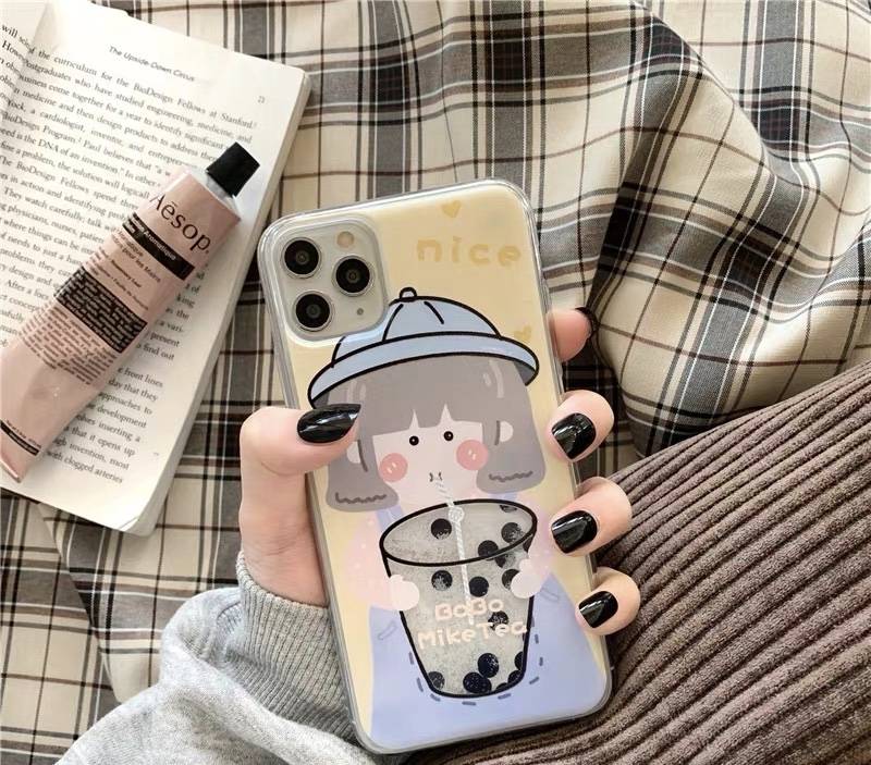 流沙奶茶女孩适用苹果x/xs/11promax手机壳iPhonexr/8plus创意7潮