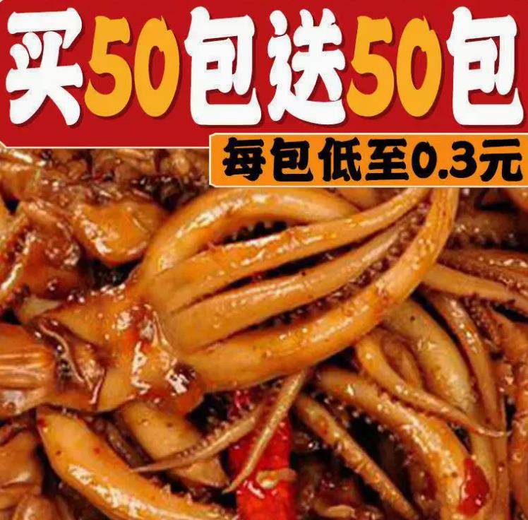 【特价100包】香辣鱿鱼丝零食铁板香菇鱿鱼须麻辣小吃5包熟食即食