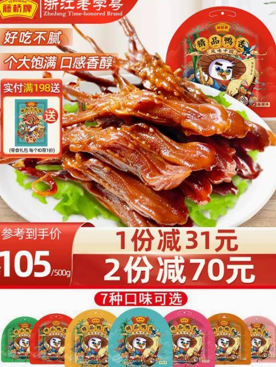 藤桥牌精品大鸭舌 温州特产小吃熟食 卤味休闲零食即食鸭舌头500g