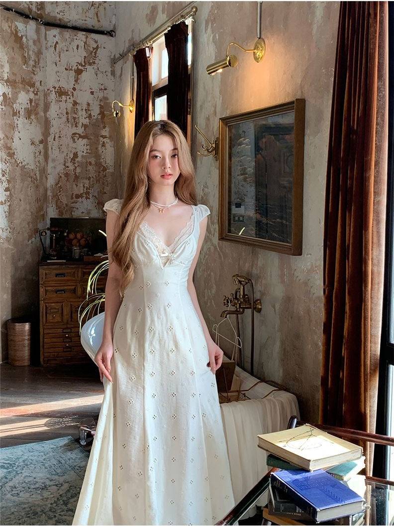 虞琪刺绣花法式气质吊带连衣裙夏季收腰显瘦长款v领仙女浪漫初恋 138.00 已售:0件