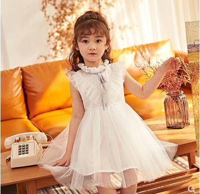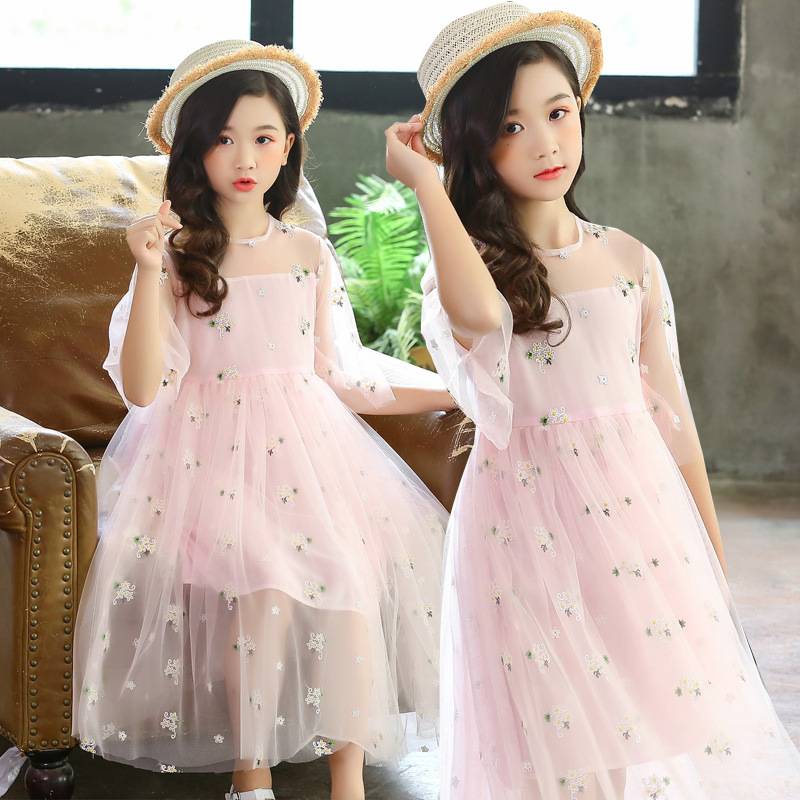 2019新款韩版女童夏季短袖沙滩长裙中大童儿童网纱休闲新品促销