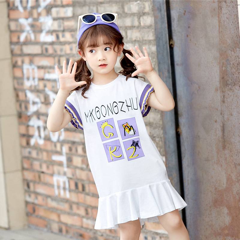 2019夏季韩版女童连衣裙潮流纯棉裙子短袖时尚荷叶边裙促销