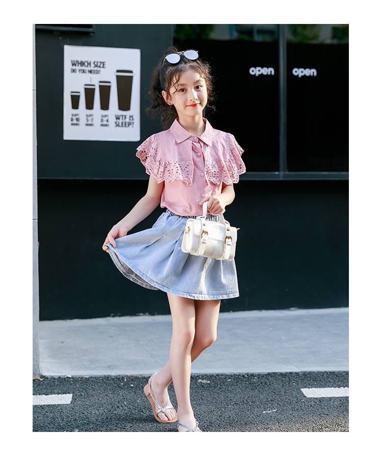 2019新款洋气时髦中大儿童夏季公主风韩版衬衫牛仔裙打折促销