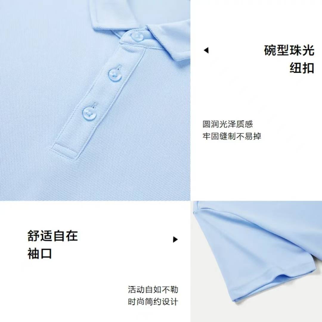 运动速干Polo衫采用了涤纶面料,吸湿速干,透气不闷热。经典翻领修饰颈部,简约纯色,时尚又舒适。
