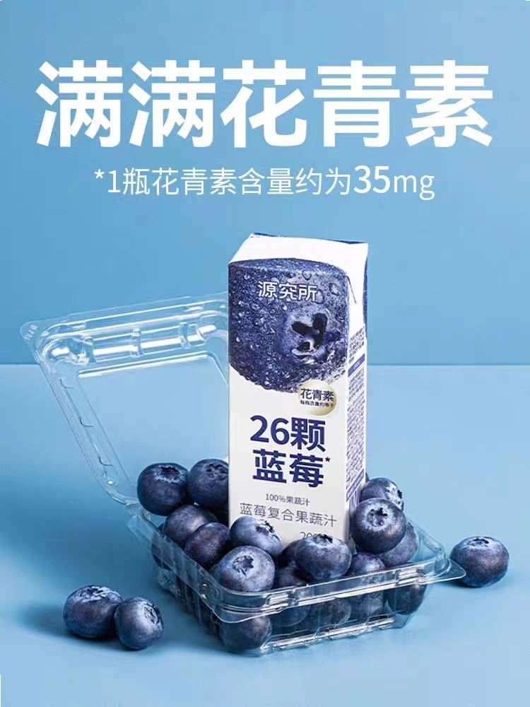 源究所蓝莓汁青花素26颗蓝莓复合纯果蔬汁NFC混合蓝莓汁饮料
