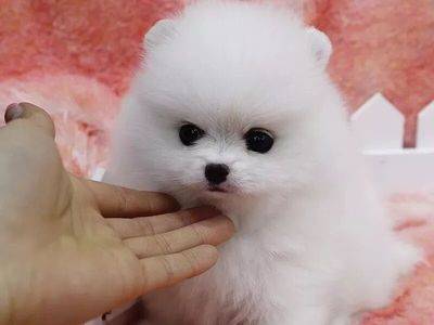 纯种白色博美幼犬活体哈多利博美俊介茶杯犬出售小体博美宠物狗狗
