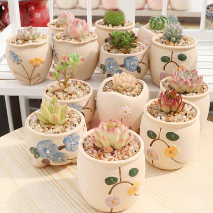 多肉植物仙人掌类开花仙人球超萌小盆栽电脑办公室桌面花卉绿植