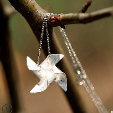 S999足银风车项链锁骨链女简约短款百搭吊坠学生脖颈饰品潮人颈链