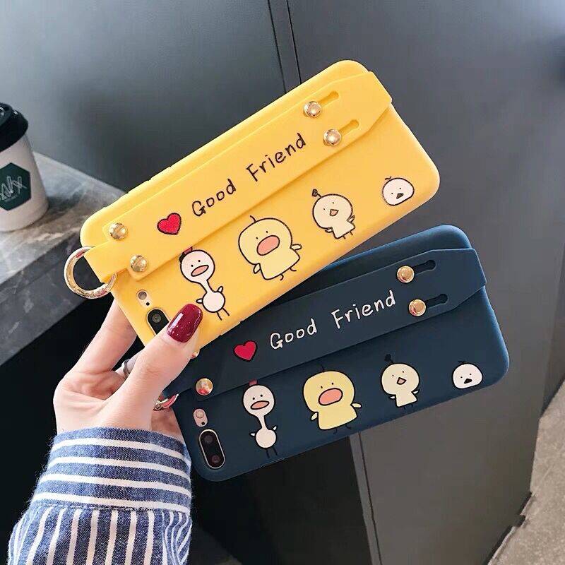 可爱卡通鸭子iPhone6sPlus软壳腕带支架手机壳