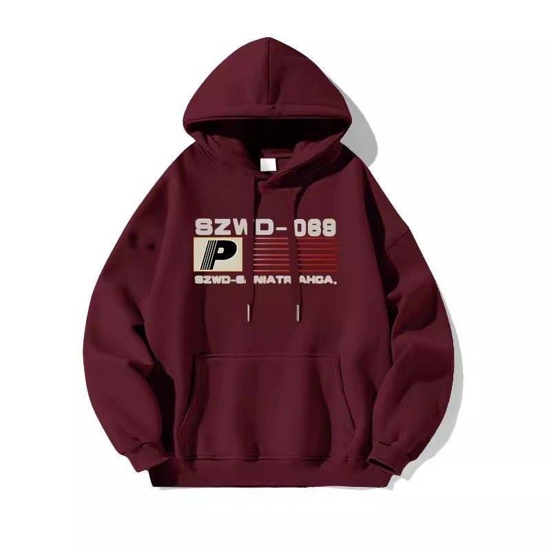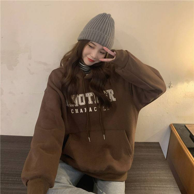连帽卫衣女秋冬新款美式复古慵懒风oversize宽松印花银狐绒外套女