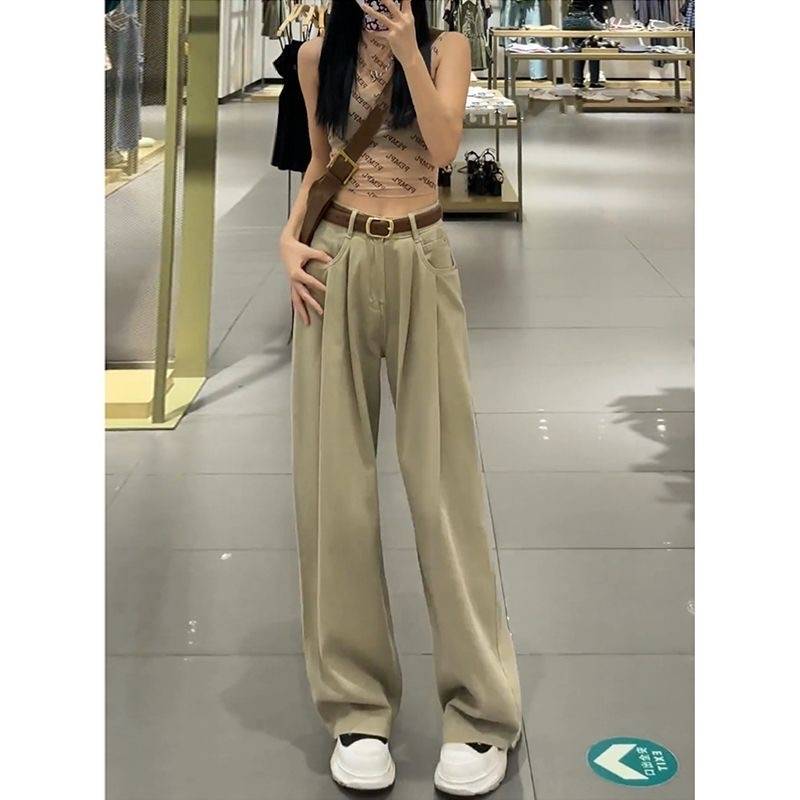 高腰褶皱阔腿牛仔裤女垂感宽松2023显瘦百搭欧美设计感拖地直筒裤