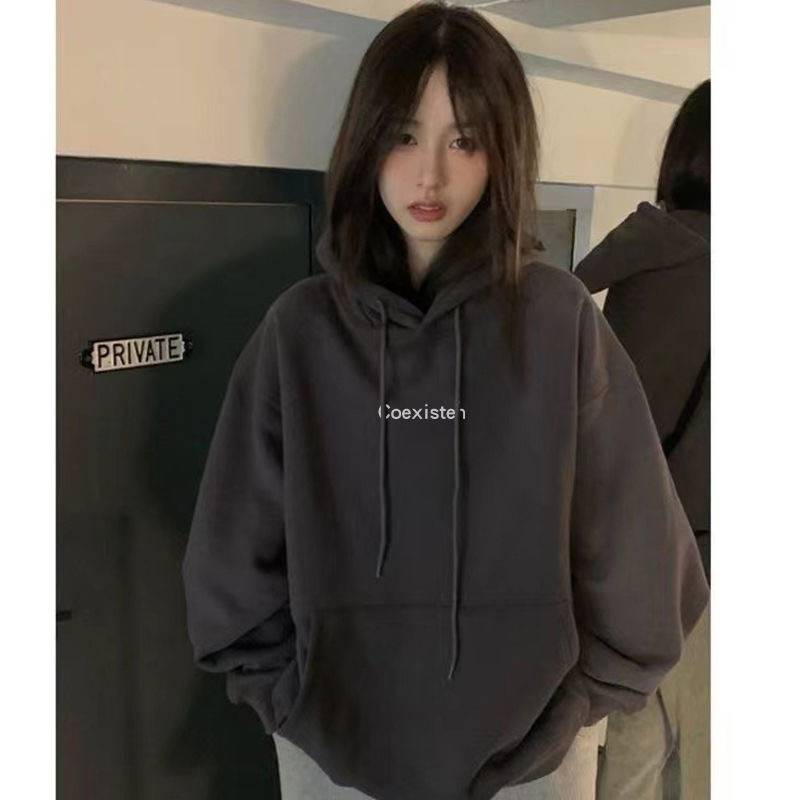 aimilian100%纯棉连帽卫衣女美式复古新款秋冬宽松慵懒风外套ins