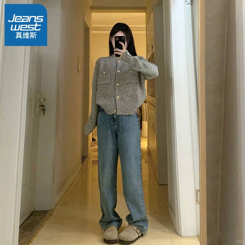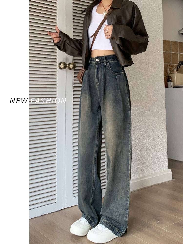 复古阔腿牛仔裤女就是高腰宽松显瘦百搭小个子大码胖mm直筒拖地裤