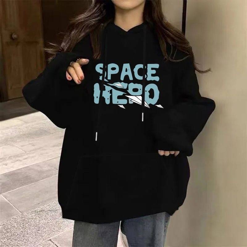 黑色vintage小众连帽卫衣女小个子古着oversize潮牌加绒外套上衣