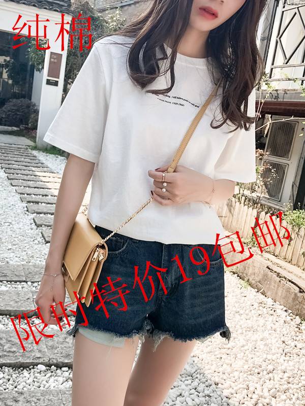 新款白色体恤衫女chic字母印花短袖学生百搭ins半袖t恤潮