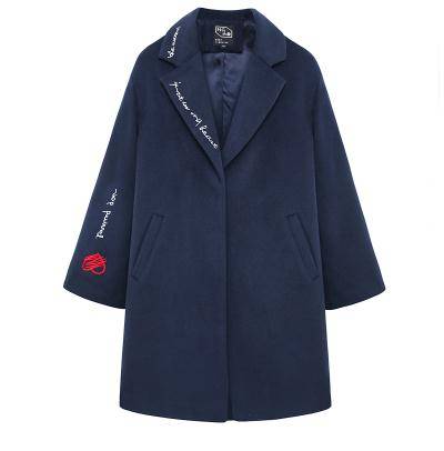 MG小象毛呢大衣女装冬季2018新款中长款刺绣矮个子原宿风呢子外套