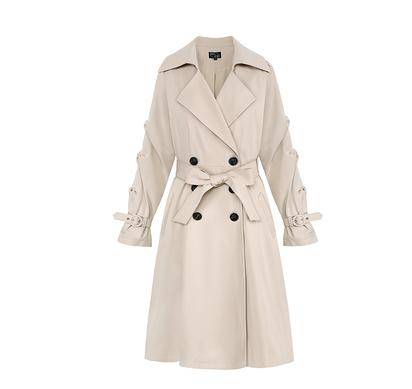 MG小象风衣女中长款秋装2018新款长袖双排扣外衣显瘦chic收腰外套