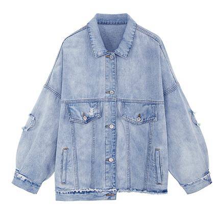 MG小象牛仔外套女春秋2018新款长袖宽松bf风毛边学生短款夹克上衣