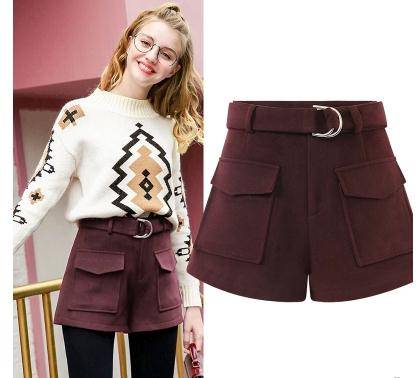MG小象高腰短裤女秋款外穿2018新款时尚宽松原宿风bf休闲毛呢裤子
