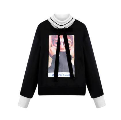 MG小象女装新款2018秋季时尚拼接卫衣学生宽松原宿bf长袖套头上衣